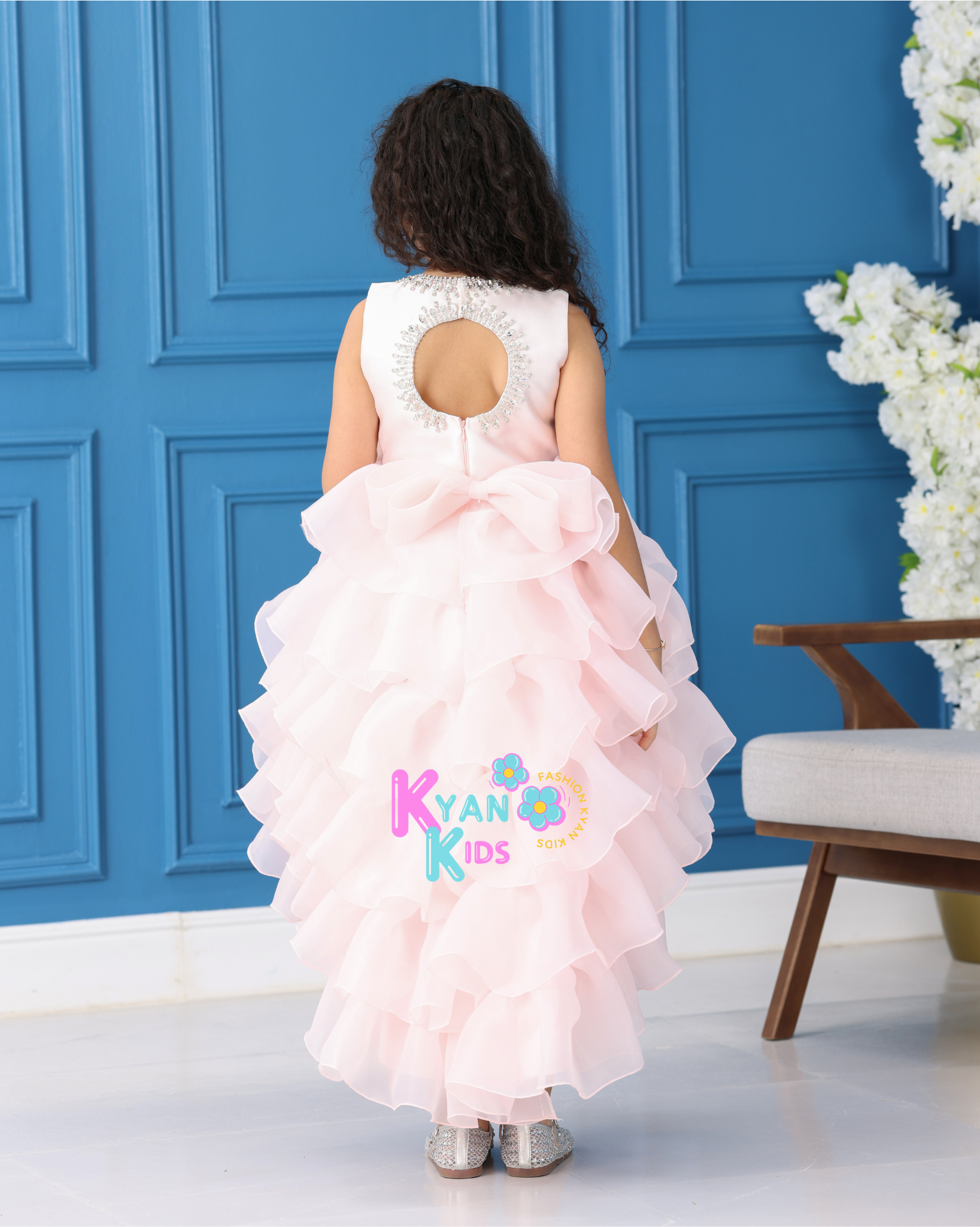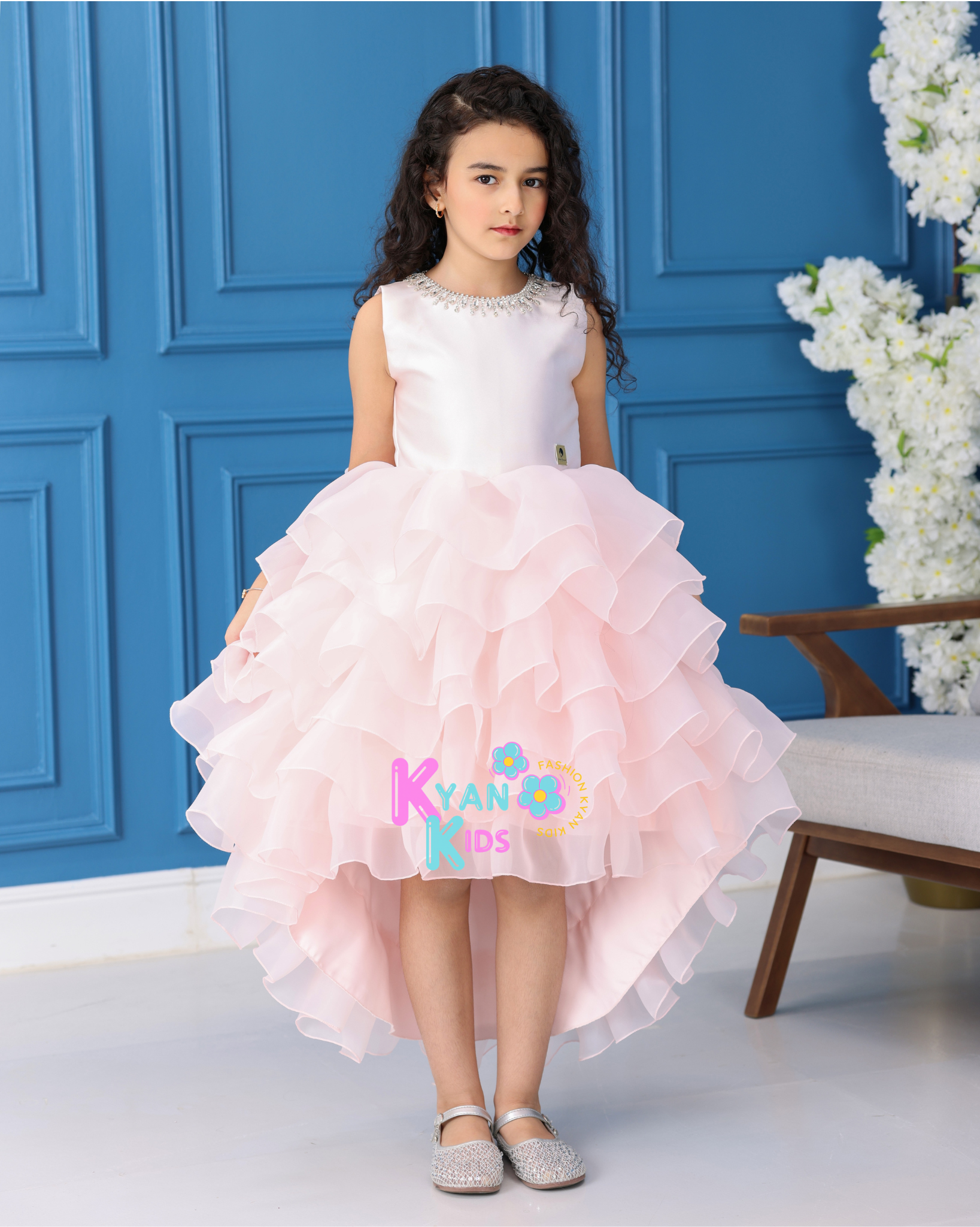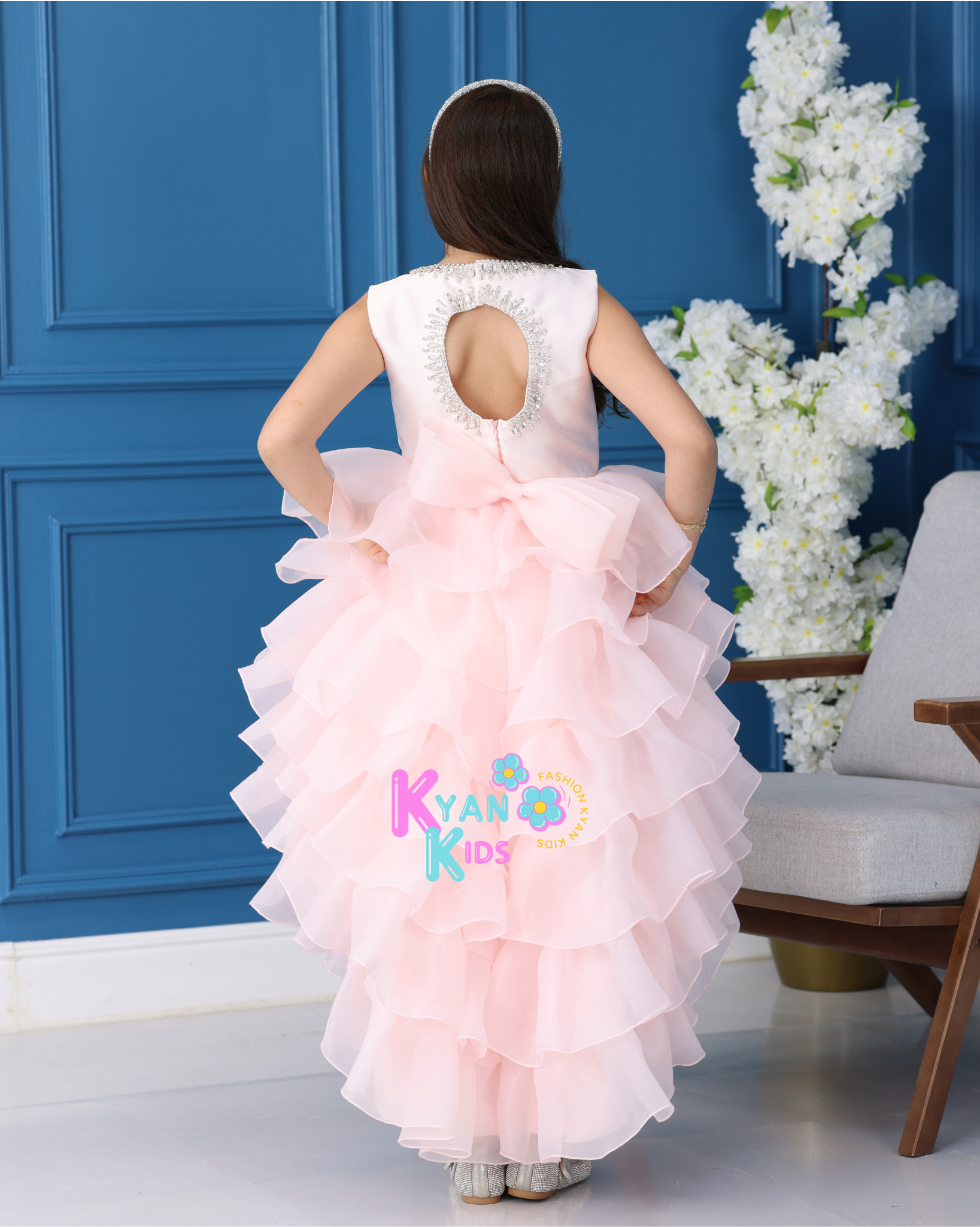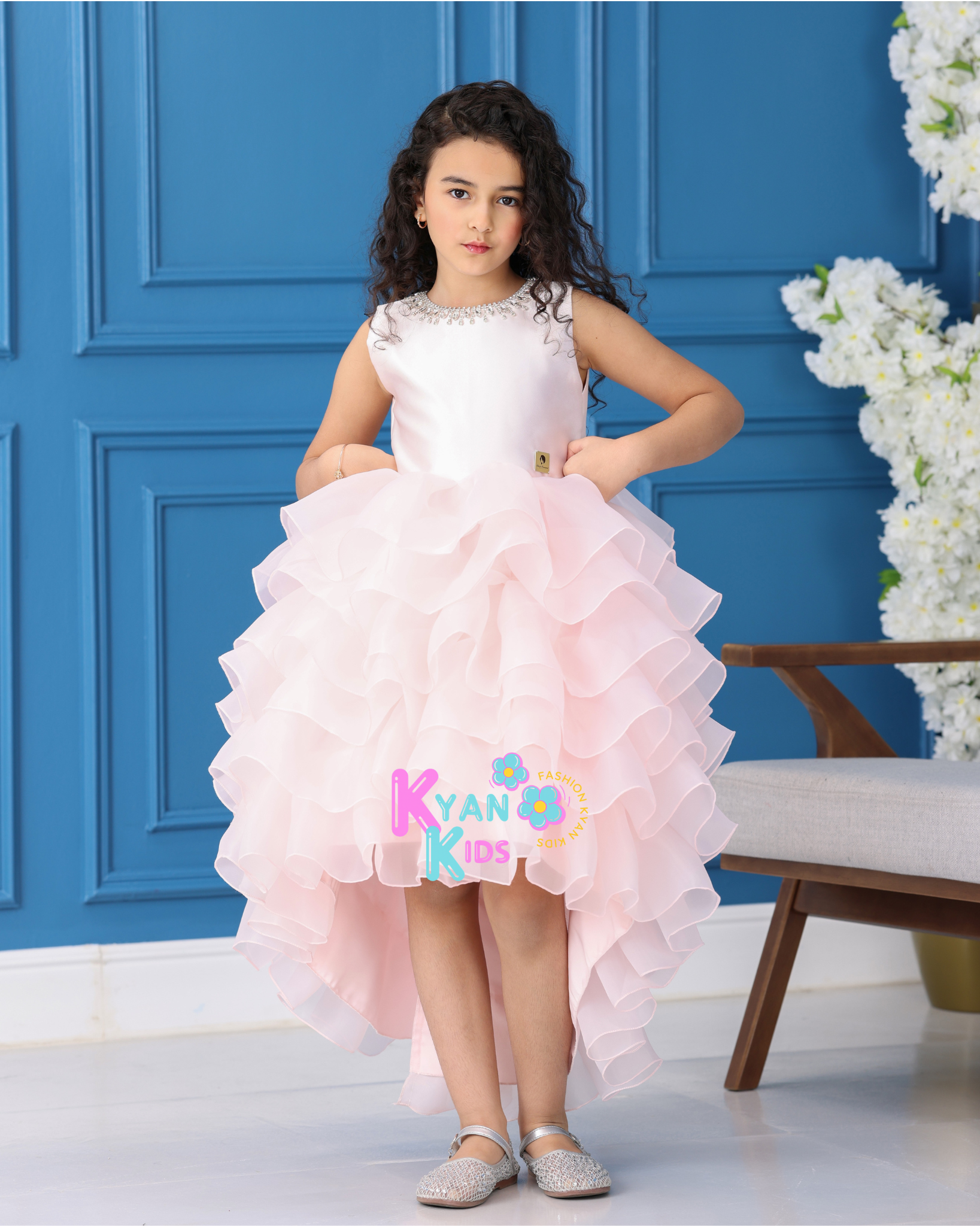يتميز الفستان بقصة منفوشة رائعة مع طبقات تول ناعمة عند الخصر، وتفاصيل الكريستال على الرقبة لإطلالة براقة وجذابة. التصميم مرتفع من الأمام ونازل من الخلف ليمنح حركة وأناقة مثالية أثناء الحفلات والمناسبات الرسمية، مثالي لجميع فساتين سهرة للأطفال والمناسبات الخاصة.